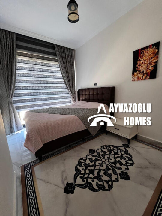 The apartment is in new condition, suitable for both personal use and short-term or long-term rent. A quiet area with natural surroundings, while nearby there are shops, bus stops and convenient access to the center of Alanya.
