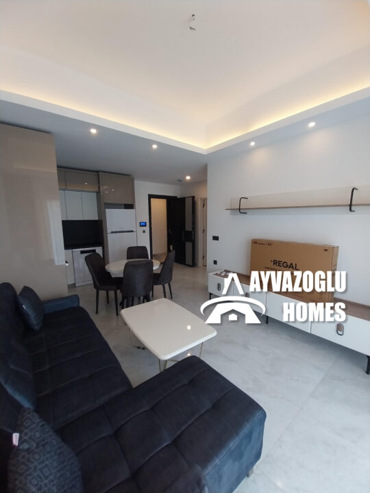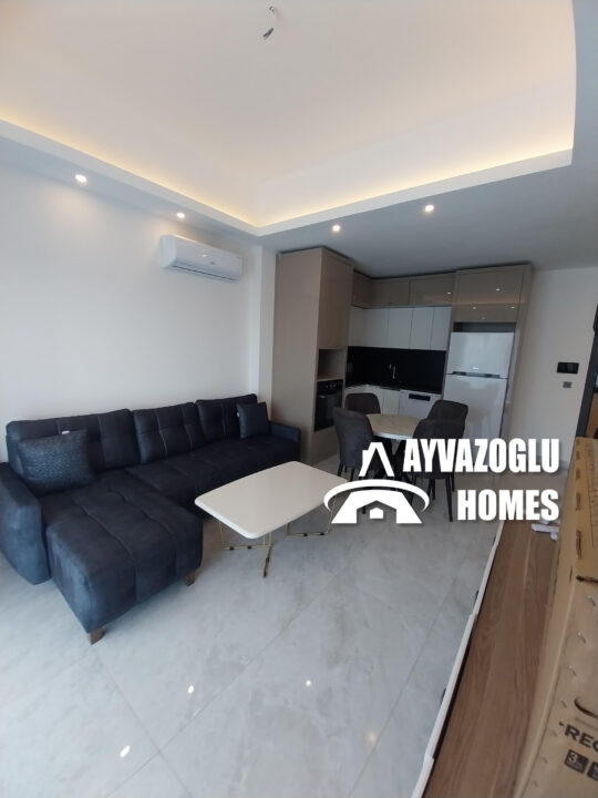 Cet appartement 1+1 de 60 m² est à vendre au 6ème étage d’une résidence moderne du quartier de Mahmutlar. L’immeuble se situe à environ 600 mètres de la mer et est entouré de supermarchés, cafés, commerces et promenades. Grâce à son infrastructure développée et son emplacement idéal, cet appartement est parfait pour y vivre, investir ou faire de la location. Il comprend un séjour spacieux avec cuisine ouverte, une chambre lumineuse et un balcon offrant une vue agréable sur la résidence.