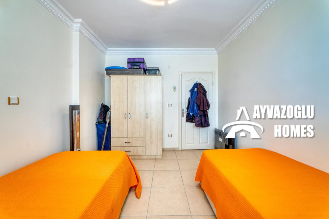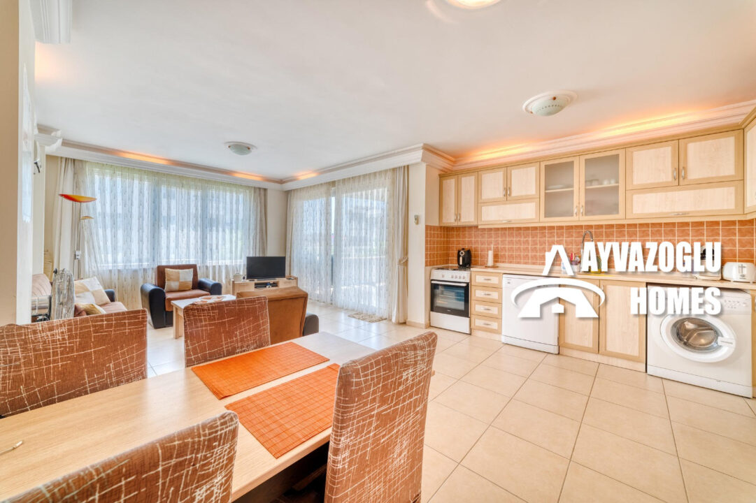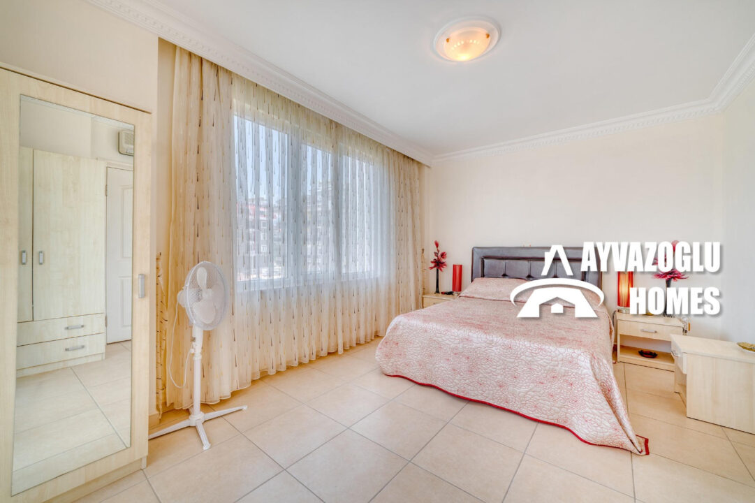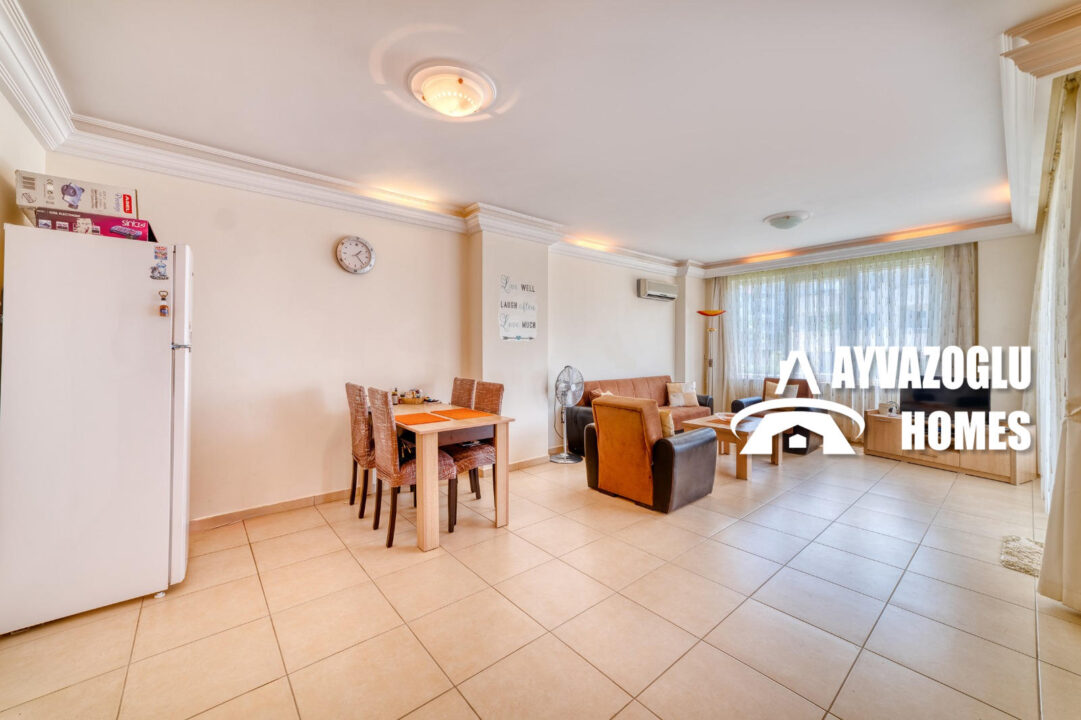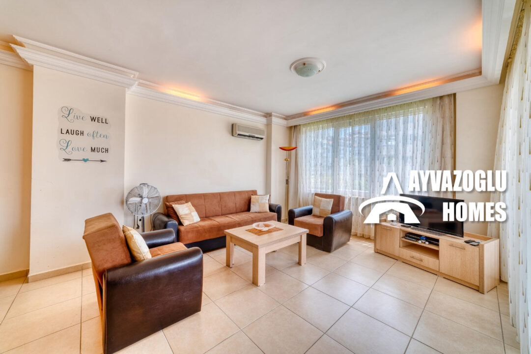 An apartment in the Oba area with a 2+1 layout and an area of 110 sq.m. is for sale. The layout of the apartment includes a living room combined with a kitchen, 2 bedrooms, 2 bathrooms, 2 balconies. The apartment has been renovated with high-quality materials. The bathrooms are equipped with a shower and modern plumbing. Hot water is supplied by an electric water heater. All rooms have air conditioners. The apartment is fully furnished and does not require additional investments, it is ready for occupancy.