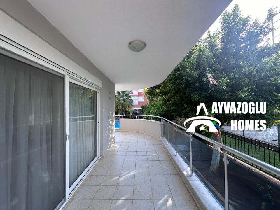 We offer a spacious 2+1 apartment with an area of 100 m², located on the high ground floor. The apartment is fully furnished and ready to move in. It has a cozy living room with an open-plan kitchen, two bedrooms, a bathroom with a toilet, and two large balconies, one of which overlooks the pool.