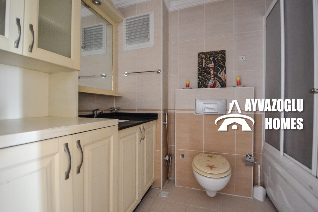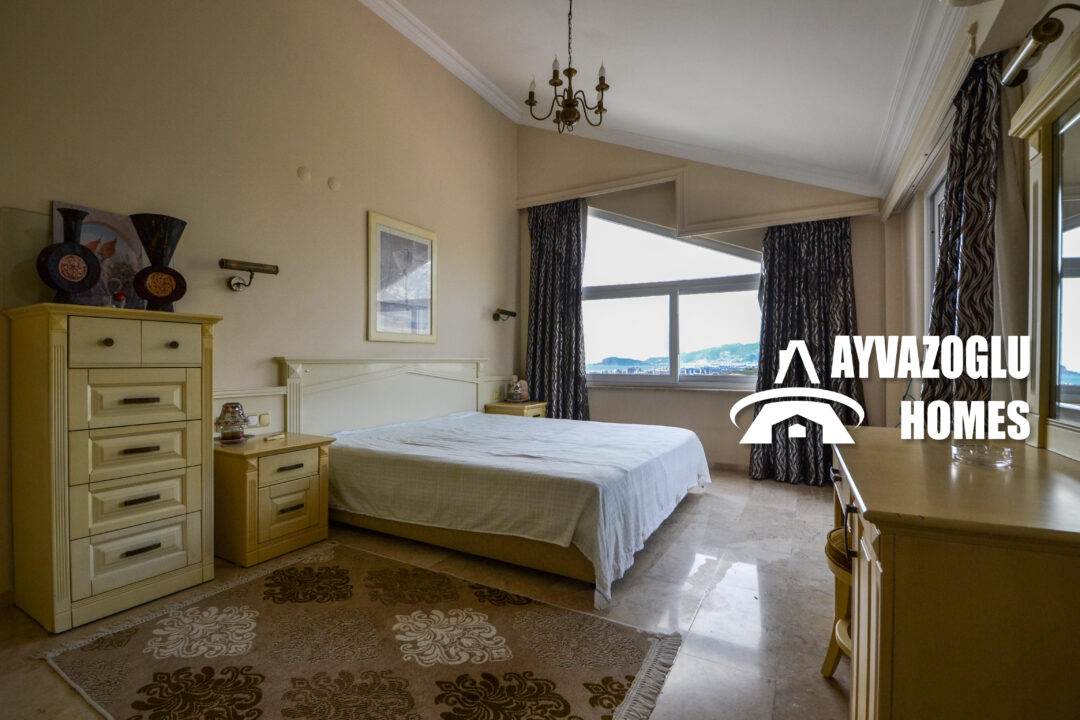 This spacious 3+1 villa, measuring 137 m², is for sale in the picturesque Kargicak area, just 2.5 km from the sea. The property is located within a modern complex with extensive amenities and a high level of service.