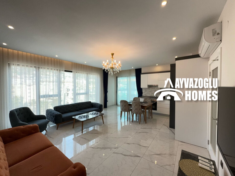 Выставлена на продажу квартира в центре Алании планировкой 2+1, площадью 115 кв.м. Планировка квартиры подразумевает гостиную совмещенную с кухней, 2 спальни, 2 санузла, 2 балкона. В квартире сделан качественный ремонт с применением современных материалов. Санузлы оборудованы душевой кабиной и современной сантехникой. Горячее водоснабжение осуществляется при помощи электроводонагревателя. Во всех комнатах установлены кондиционеры. Квартира полностью меблирована и не требует дополнительных вложений, она готова к заселению.