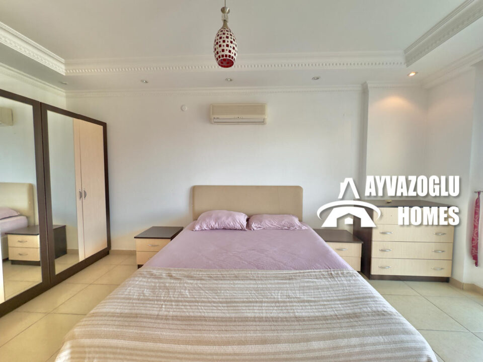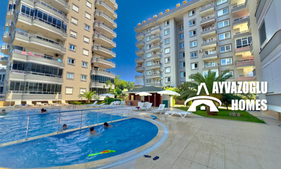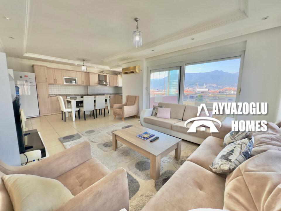 Bu ferah 120 m² daire, Alanya’nın en popüler ve köklü semtlerinden biri olan Tosmur semtindeki modern bir konut kompleksinin 5. katında yer almaktadır. Oturma izni almaya uygundur.